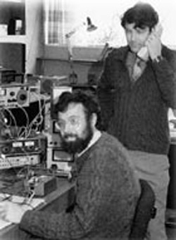 Photo: Alan Purvis (seated) and Newton Spargo just prior to closure in 1986. Both men still work at the old Pye buildings, managing their own companies.