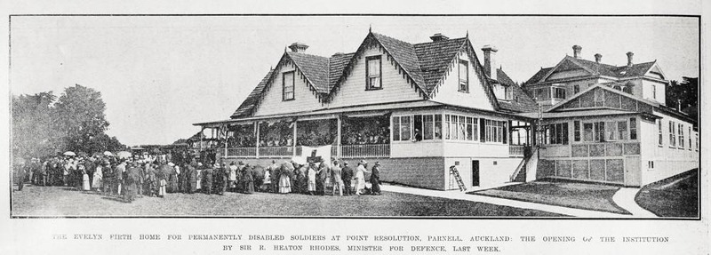 The Evelyn Firth Home for permanently disabled soldiers at Point Resolution, Parnell, Auckland: The opening of the institution by Sir R. Heaton Rhodes, Minister for Defence. Acknowledgement ‘ Sir George Grey Special Collections, Auckland Libraries, AWNS-19201202-34-1