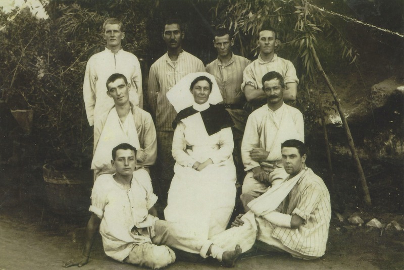 Wounded NZ soldiers At Military Hospital, Heliopolis, Egypt after evacuation from Gallipoli 1915. Harold Beilby: Back row – far right.