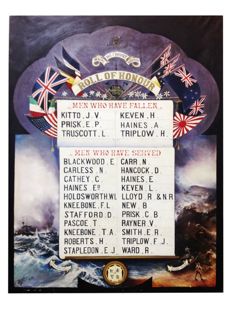 This attractive Roll of Honour was gifted to the museum and names the men Killed in Action and those serving during the World War One. The Roll of Honour is from the defunct Waihi Wesley Methodist Church (now Assembly of God) in Haszard street, Waihi.
