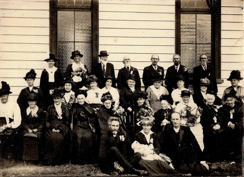 People in photo: Rev and Mrs Olphert, Rev Trigg, Mrs Harvey, Mrs George, Mrs Armour, Mrs Anderson, Mrs Hollis, Mrs Joll, Mrs Brydon, Madam Corree, Mrs Boswell, Mrs Hartley, Mrs Nicholson, Mrs Cherry, Mrs Aitken, Mrs Pascoe, Mrs Harrison, Mr Stannaway, Mr Smith, Mr Trembath.